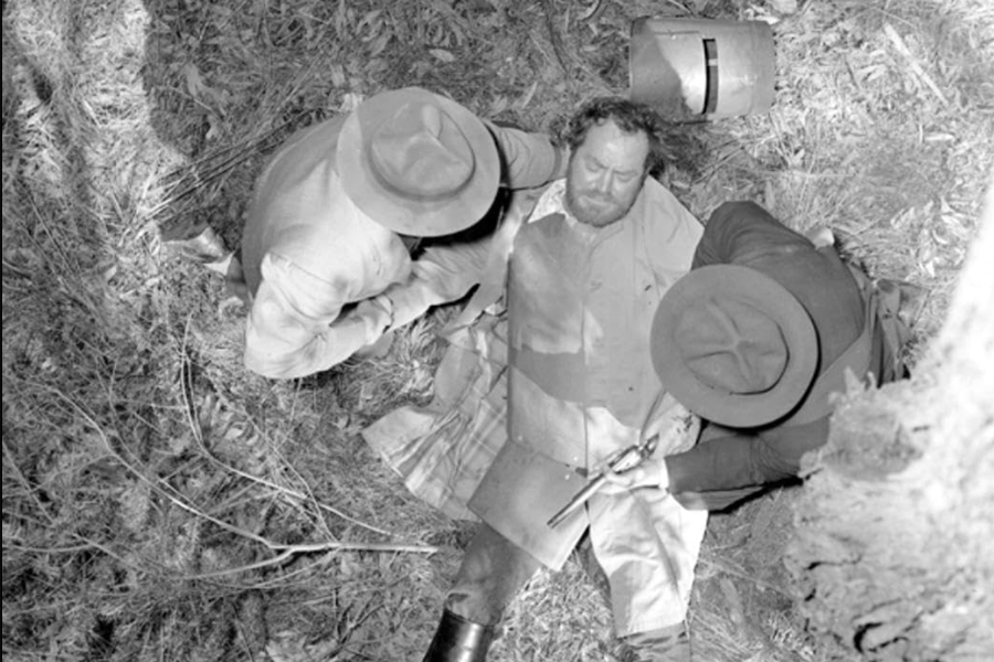 After the release of the world’s first full length movie featuring Ned Kelly in 1906, several more films focusing on the Kelly story were produced. In two of them, Ned was played by actor Godfrey Cass — real name Godfrey Castieau – who was the son of the Melbourne Gaol Governor John Buckley Castieau. As a thirteen-year-old, Godfrey had met Ned while the bushranger awaited execution in his father’s Gaol. When the Governor introduced Godfrey to his famous inmate, Ned was reported to have said, ‘Son, I hope you grow up to be as fine a man as your father.’ Godfrey played Ned Kelly for the last time in When The Kellys Were Out, when he was aged fifty-seven.